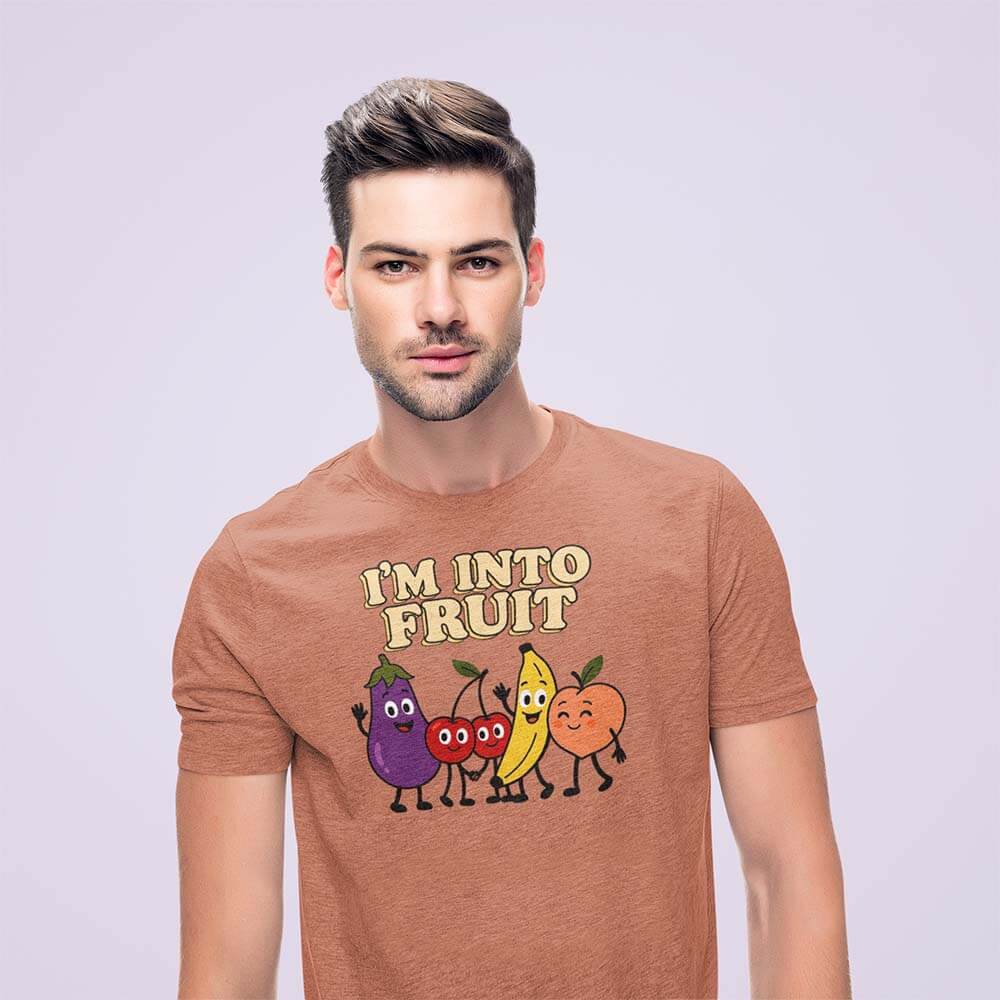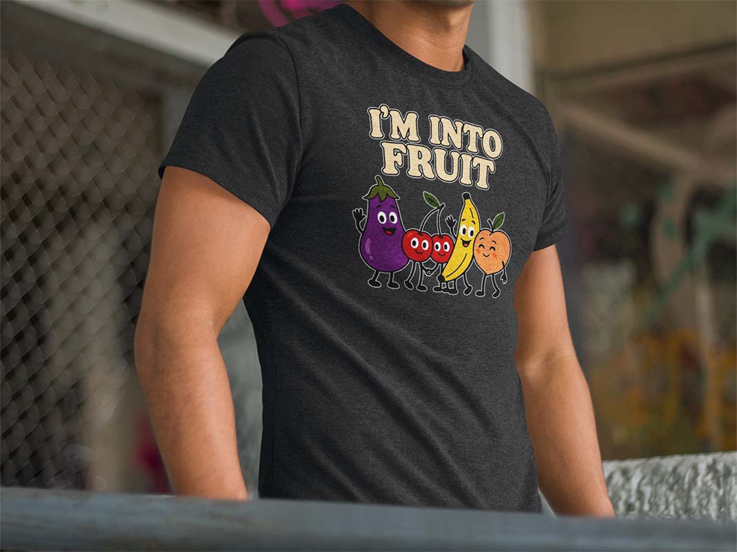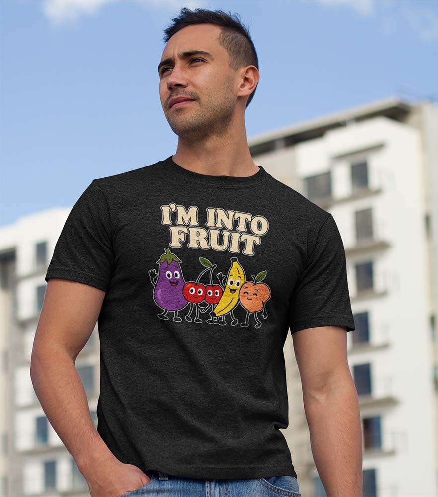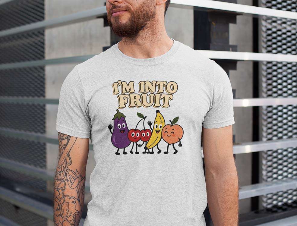 Celebrate your juicy side with our “I’M INTO FRUIT” tee — a deliciously playful tribute to queer culture and fruity fun! 🍆🍒🍌🍑