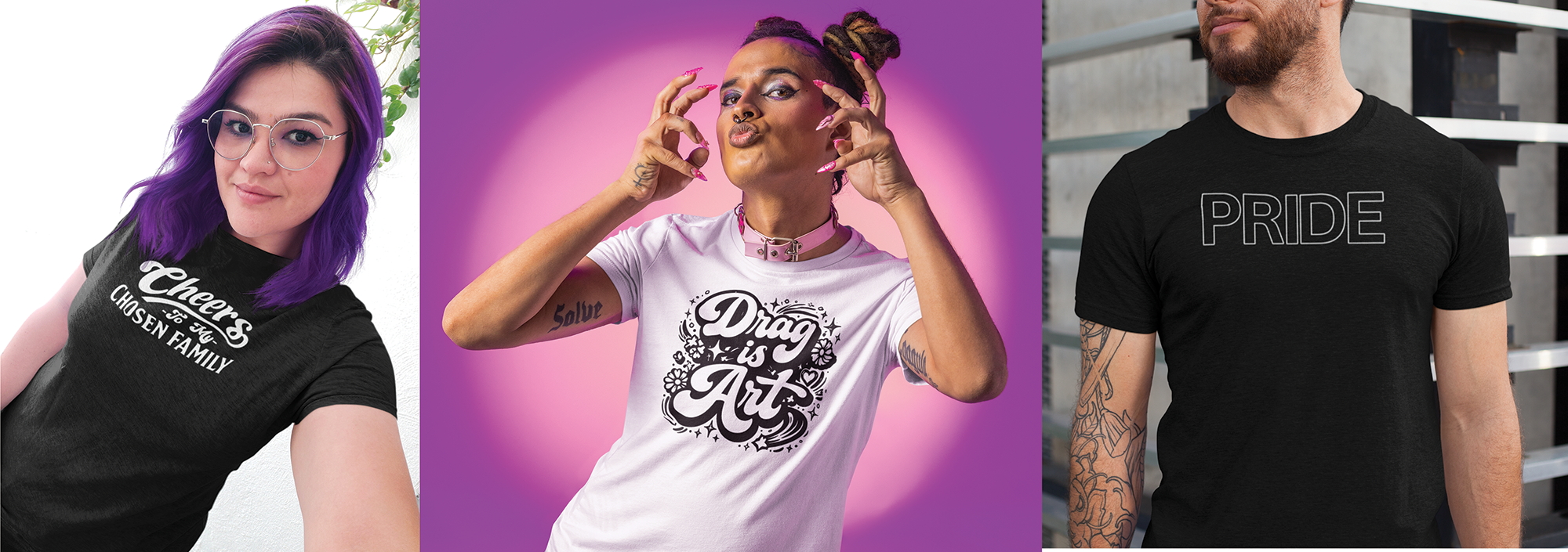 Explore CollectionThis is more than just clothing — it’s confidence you can wear. Explore our collection of tees, tanks, and more, designed to make space for every color of the rainbow and every story under the sun. Whether you're heading to a Pride parade, a protest, or just showing up as yourself, these pieces are made to empower.